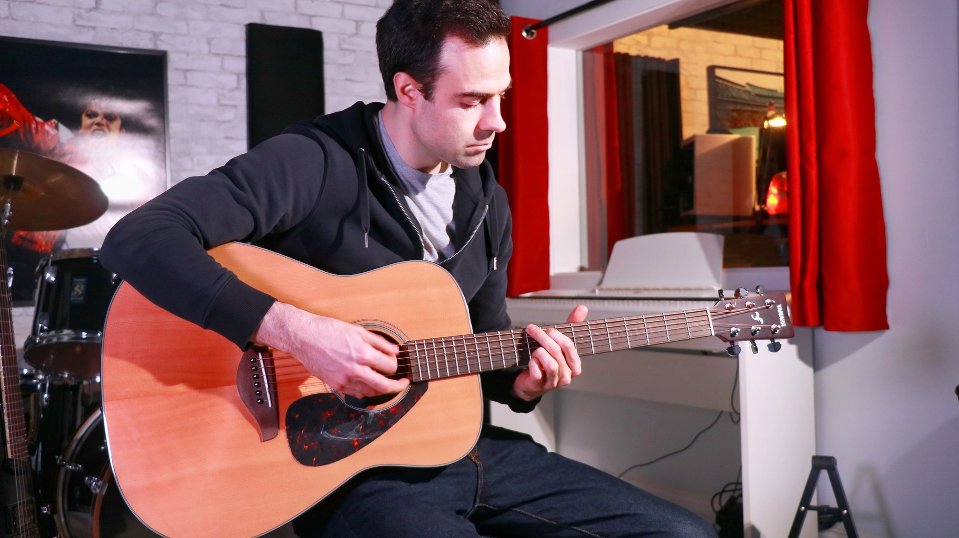 Studio rehearsals feature a PA system, mics, mic stands, music stands and instrument amps. An electronic drumkit is available for rental or an acoustic drumkit can be brought along for the session.